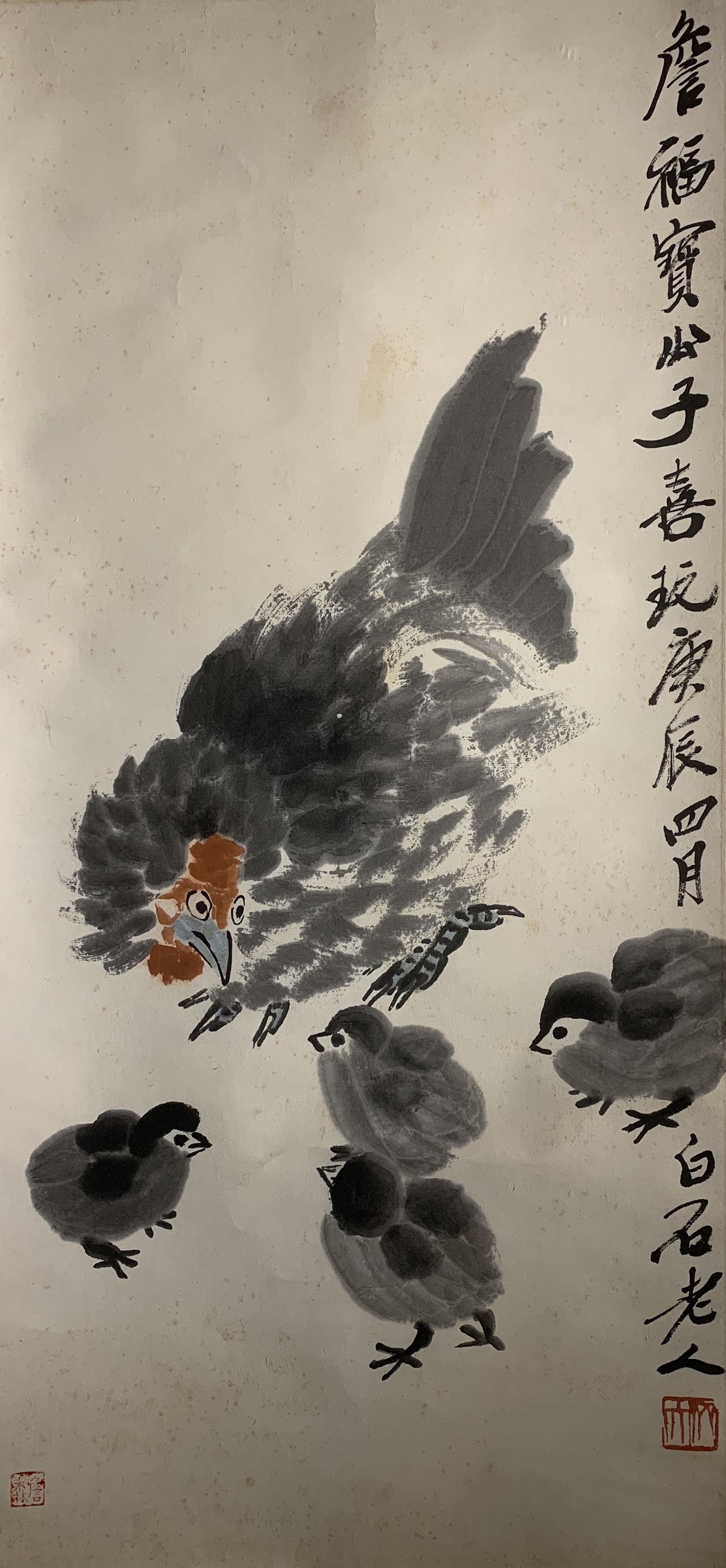 A painting of rooster and chickens by Qi Baishi, $100,000 purchased Sept, 2018